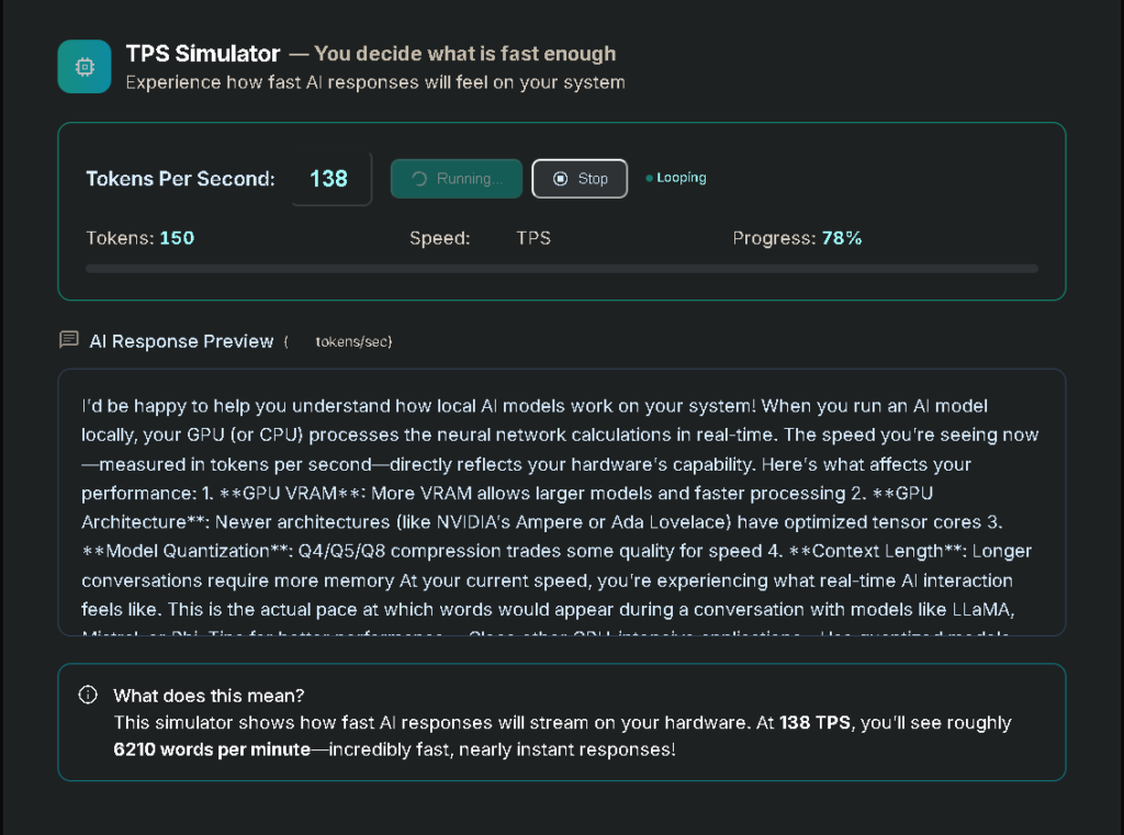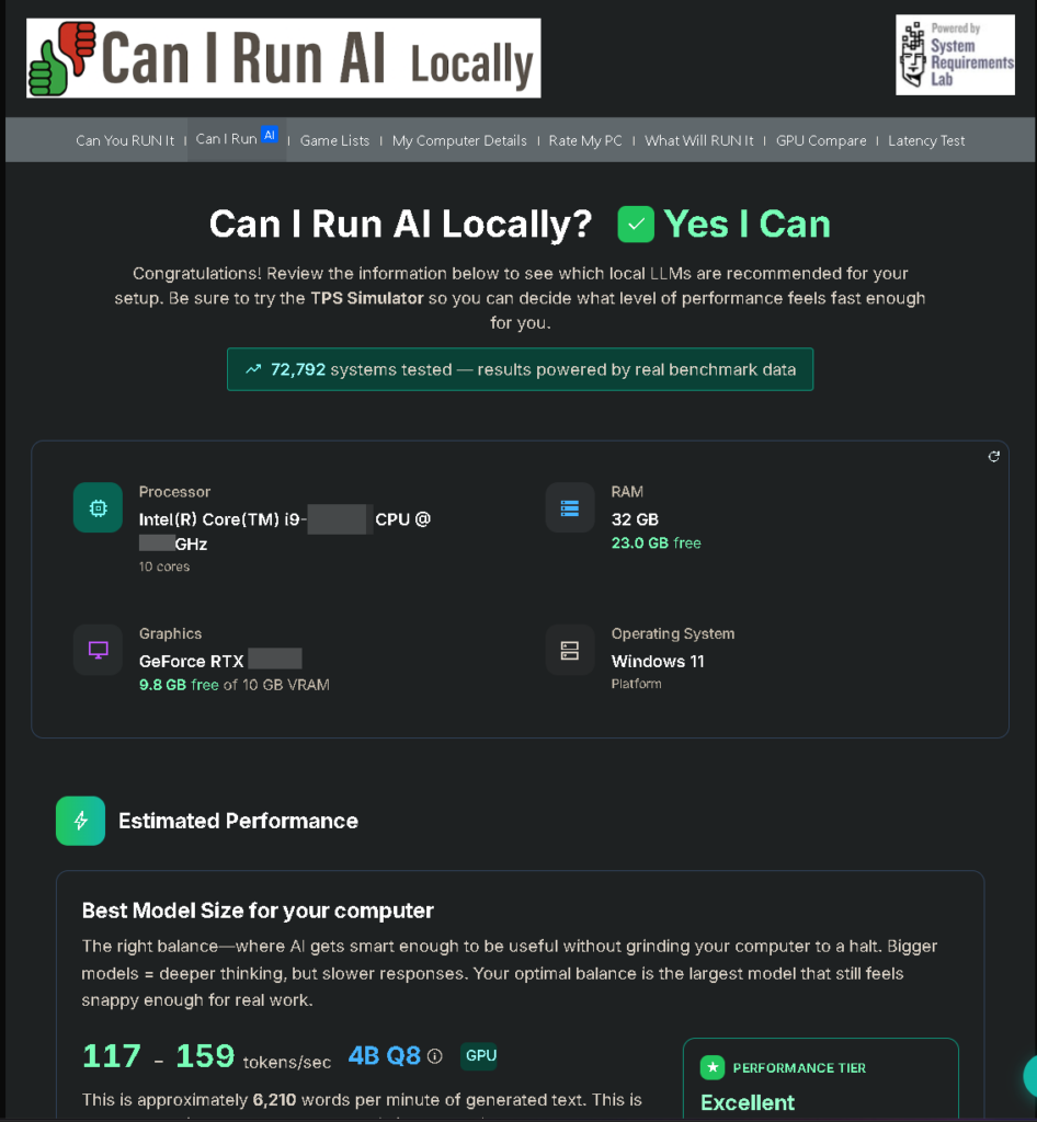 スキャンが終わると、「あなたのPCで動かせる最適なAIのサイズ」や