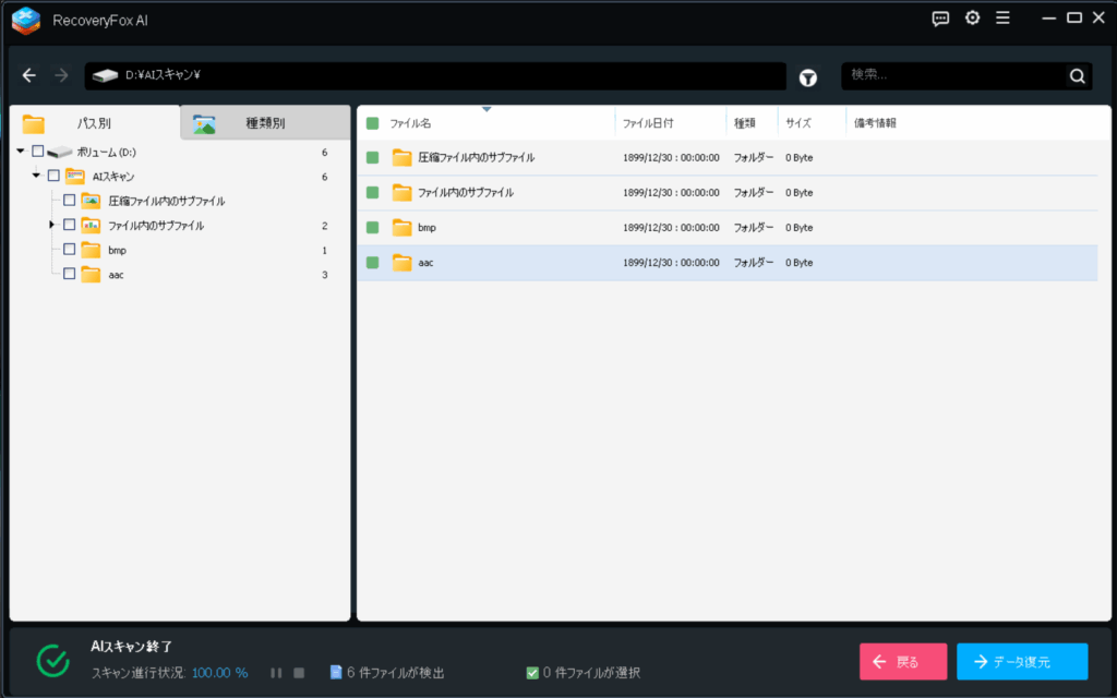一方、RecoveryFox AIは「復元したいだけの人」に最適化されていて、最短ルートで
